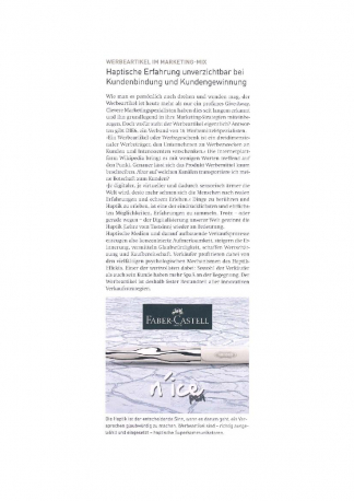 Berührung schafft einzigartige Emotionen und Differenzierung von Marken. Die Haptik ist der entscheidende Sinn wenn es darum geht, ein Versprechen glaubwürdig zu machen. Das kann beispielsweise auch mit Werbeartikeln gelingen, die richtig ausgewählt und eingesetzt, haptische Superkommunikatoren sind.