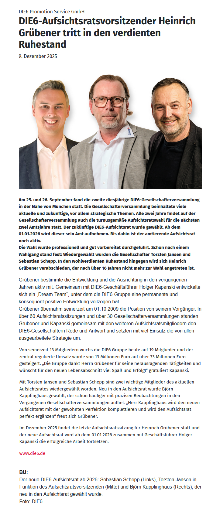 DIE6 wählt neuen Aufsichtsrat