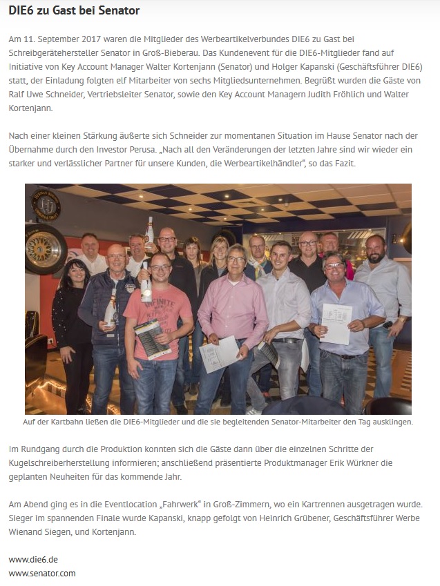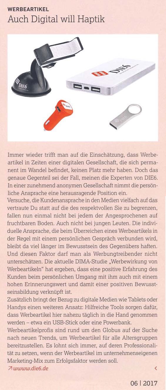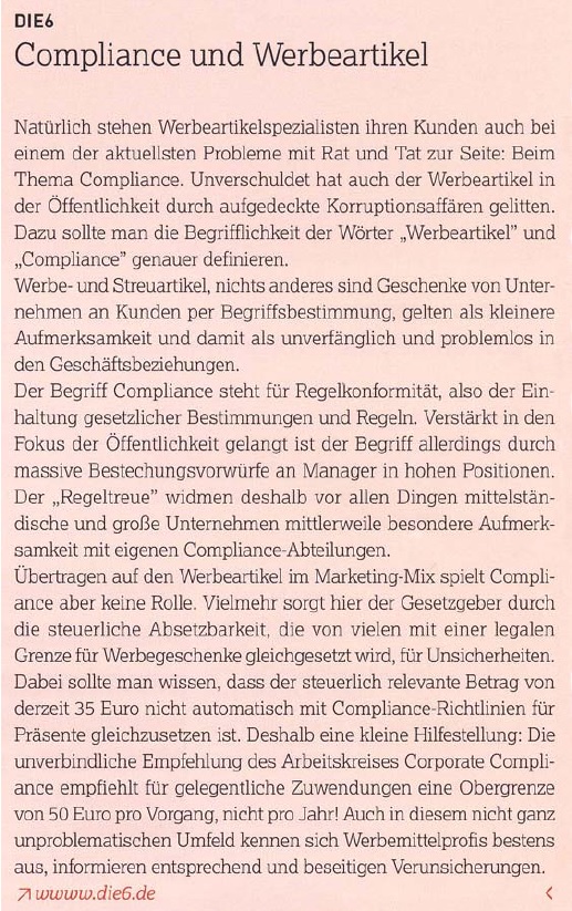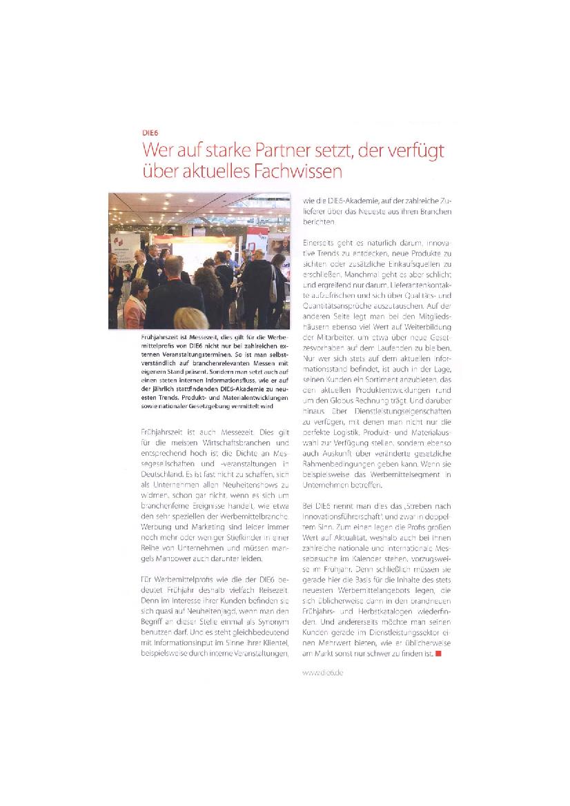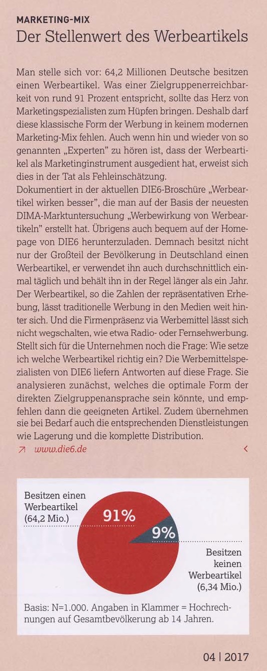 Im DIE6-Pressearchiv finden Sie zahlreiche Artikel und Informationen vom und über das Profi-Netzwerk der Werbeartikel-Unternehmer.