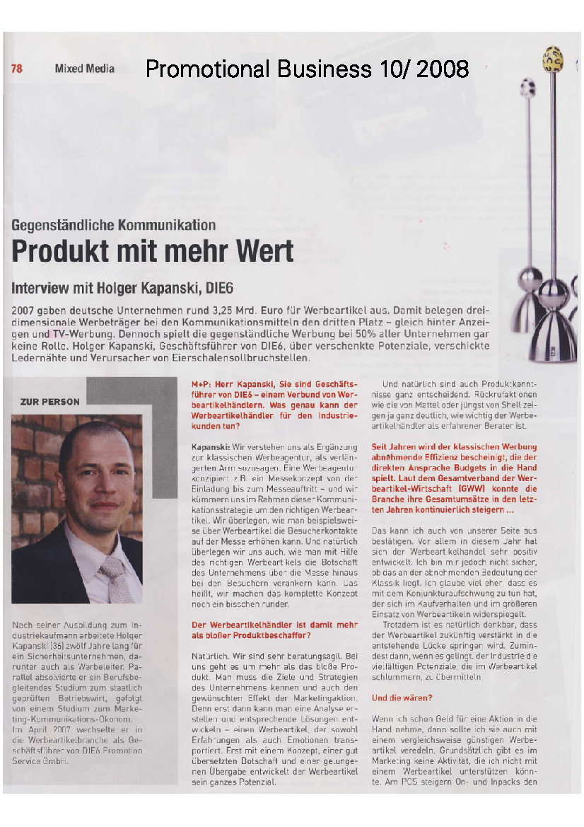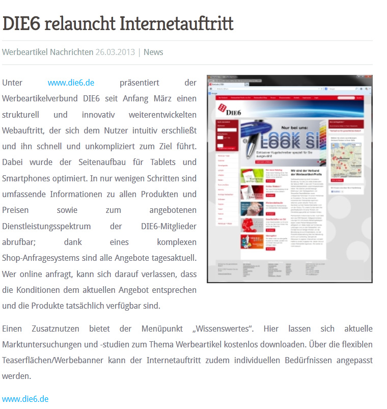 Pressemeldungen Werbeartikel DIE6
