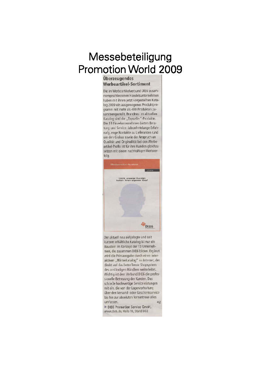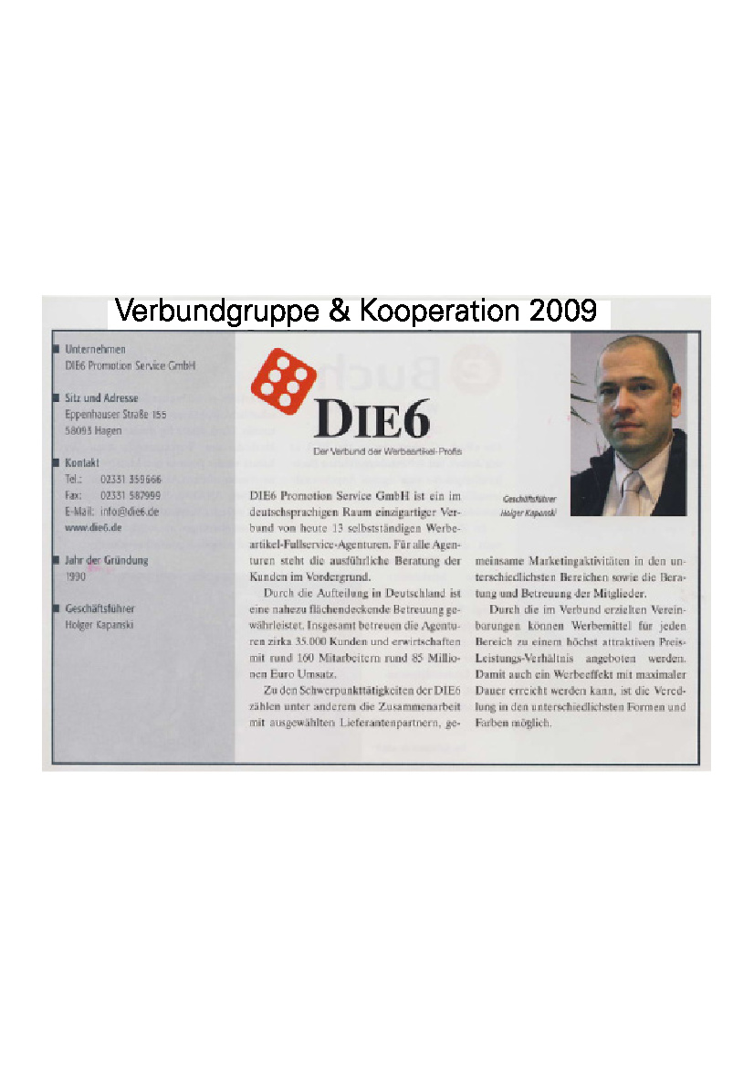 Im DIE6-Pressearchiv finden Sie zahlreiche Artikel und Informationen vom und über das Profi-Netzwerk der Werbeartikel-Unternehmer.