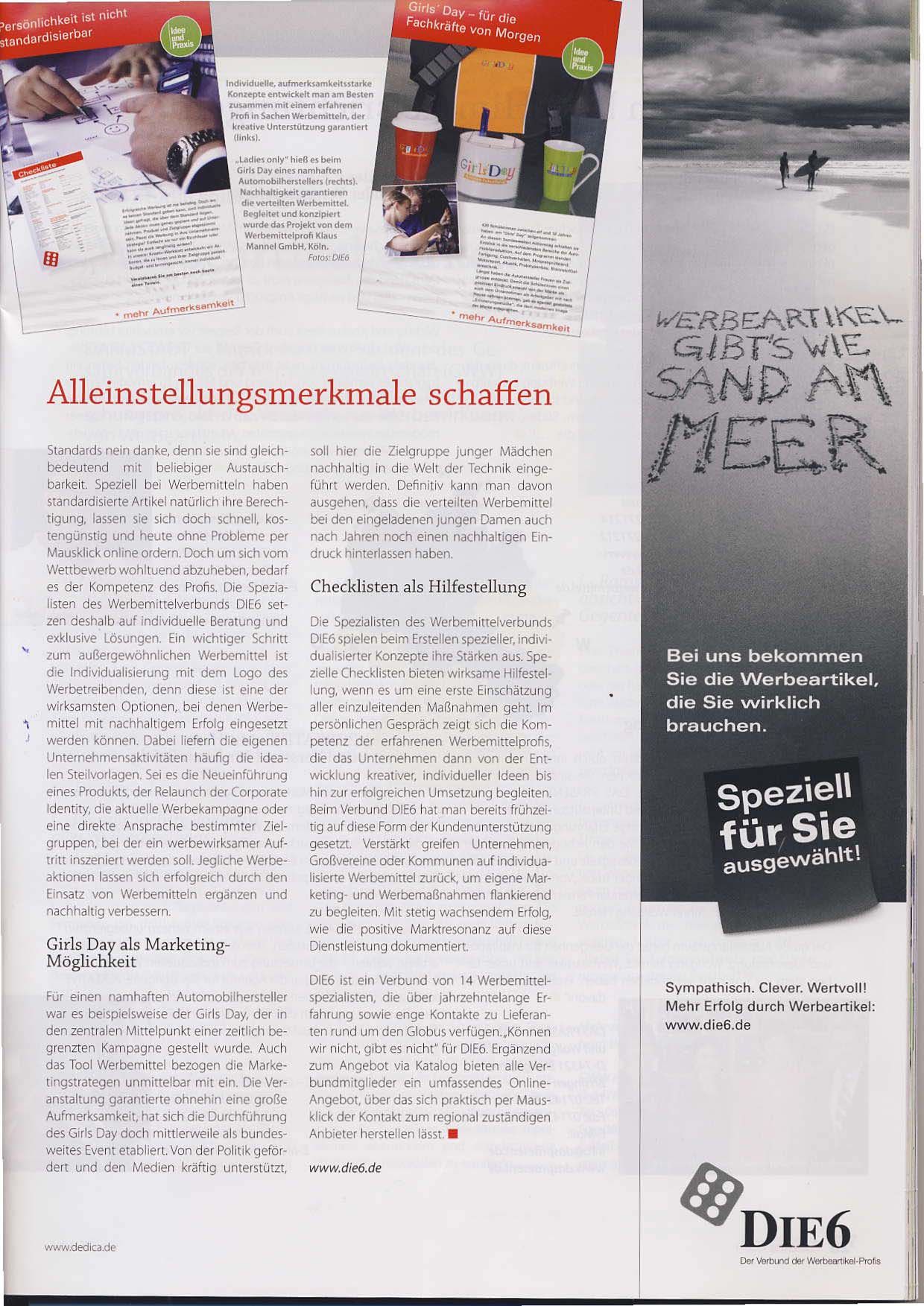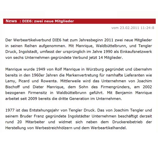 Im DIE6-Pressearchiv finden Sie zahlreiche Artikel und Informationen vom und über das Profi-Netzwerk der Werbeartikel-Unternehmer.
