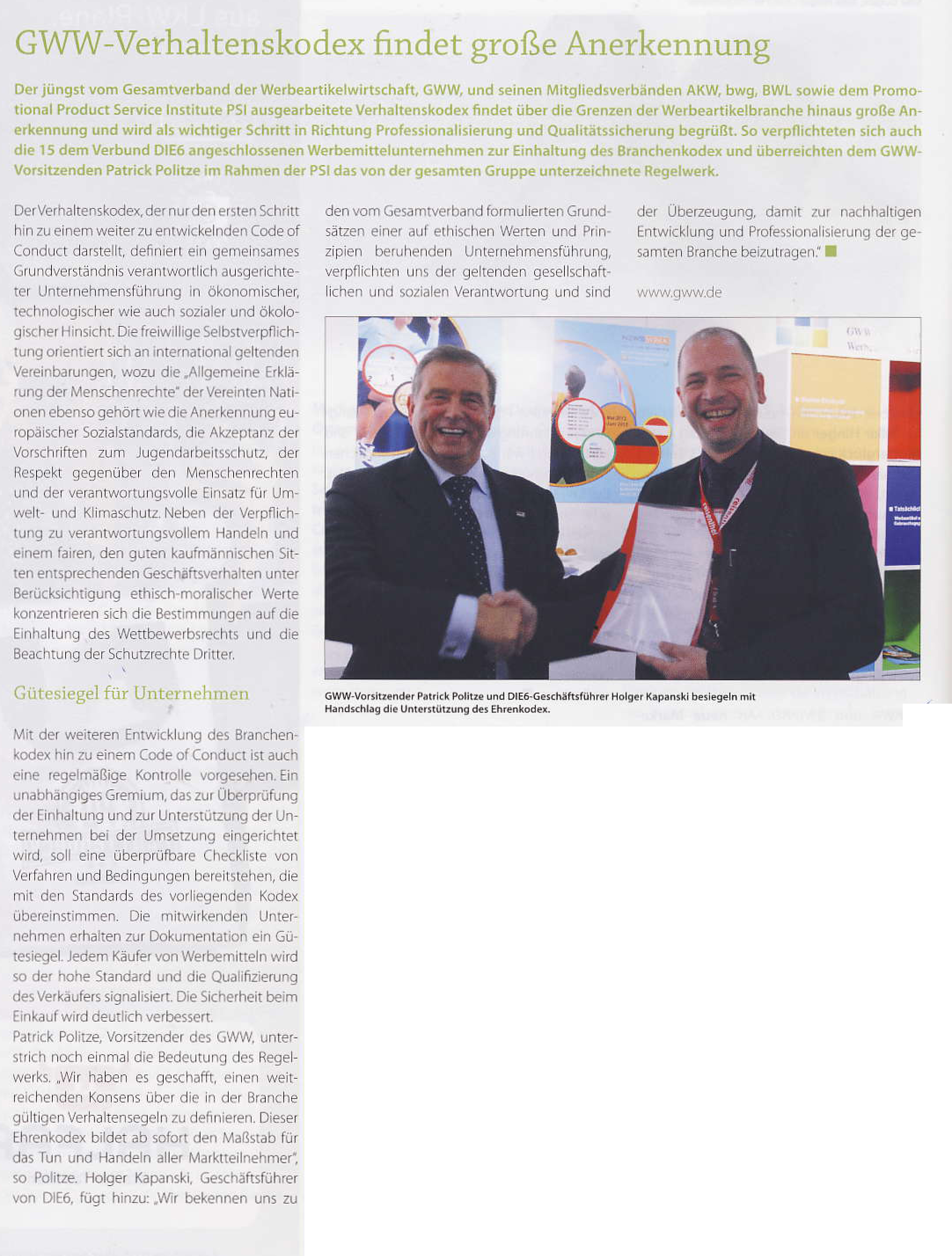 DIE6 Gruppe unterzeichnet GWW-Ehrenkodex