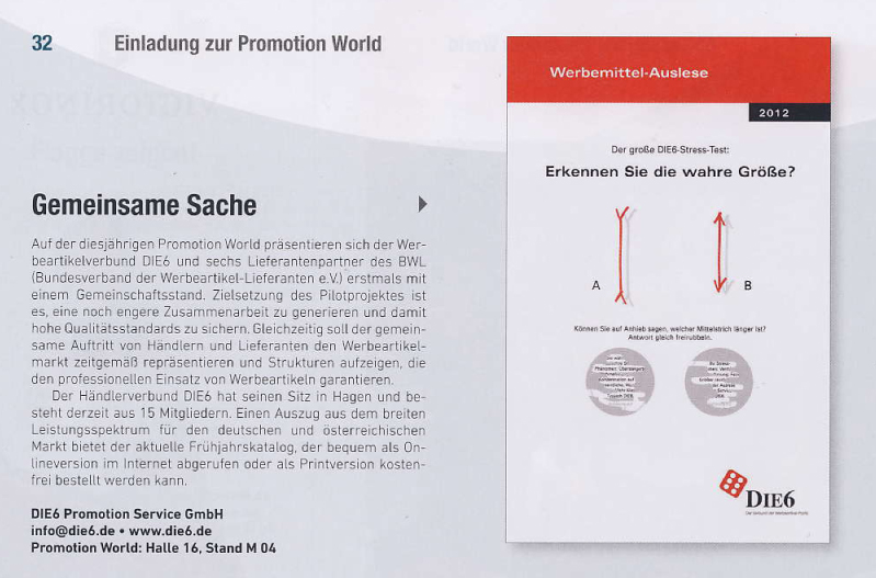 Im DIE6-Pressearchiv finden Sie zahlreiche Artikel und Informationen vom und über das Profi-Netzwerk der Werbeartikel-Unternehmer.